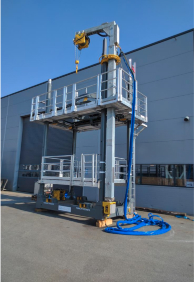 The spindle-based injector handling system gives the user a significantly safer working environment and a very accurate movement as the injector is moved up and skidded on synchronized self-locking spindles.